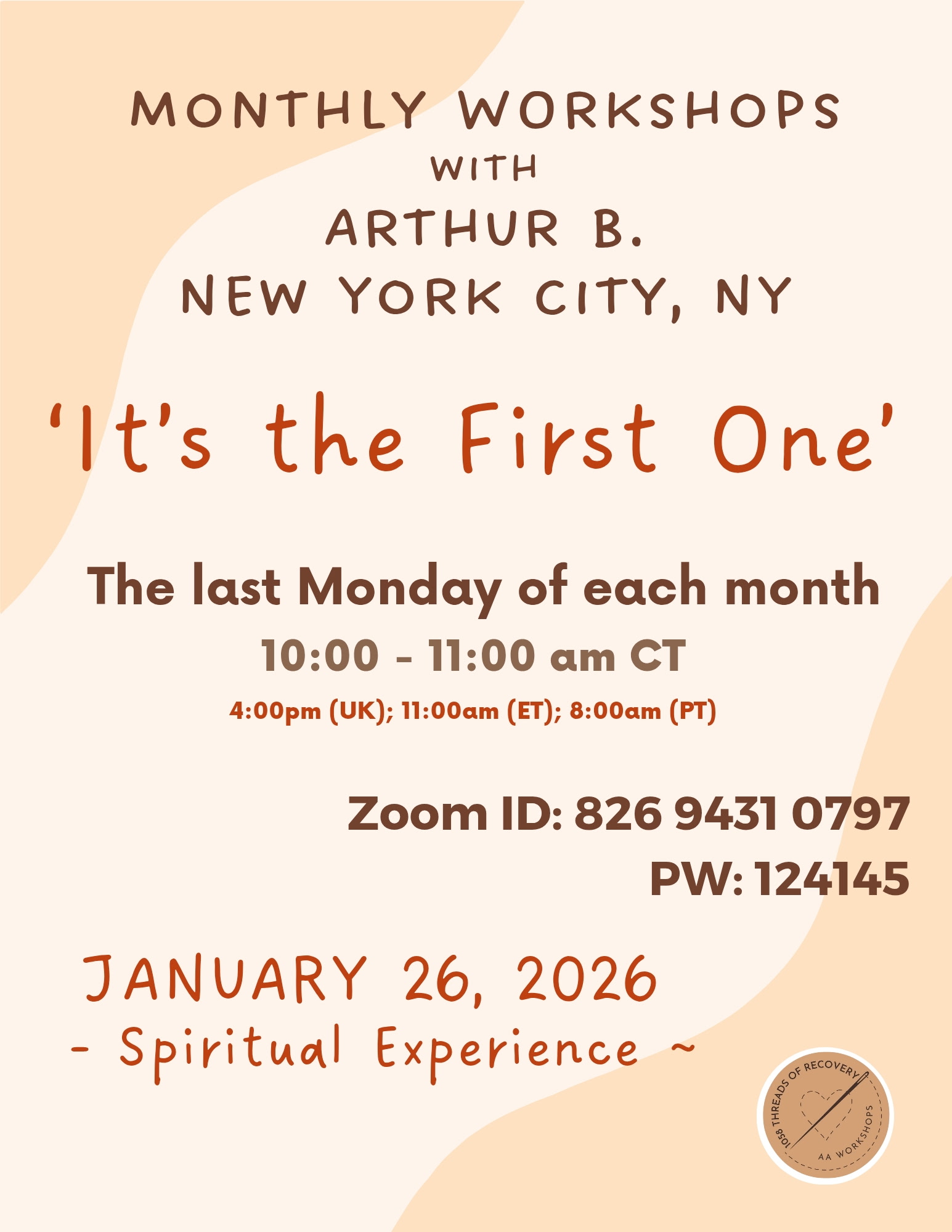 Spiritual Experience & Spiritual Awakening Workshop continues – Arthur B., Middleton, NY (January)